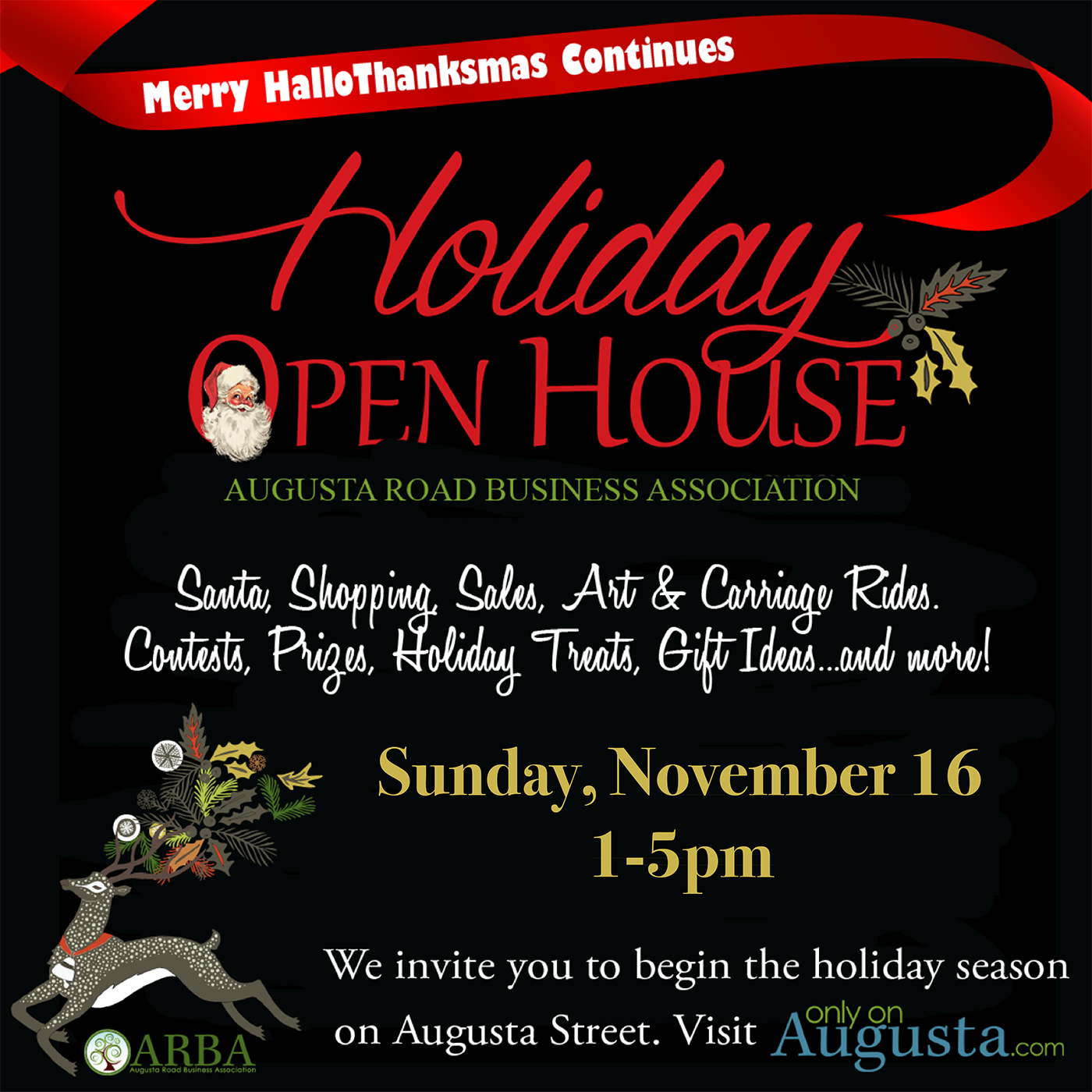 The Annual INSTAGRAM CONTEST returns! Visit this CONTEST LINK . Win a SHOPPING SPREE of gift cards from businesses along Augusta Street. HOW TO ENTER: 1. Follow @Onlyonaugusta.com 2. Like the Holiday Open House Instagram Contest post 3. Tag friends in separate comments (each tag = one entry). The contest starts as soon as the post is released and ends Sunday, November 16 by 5:00 p.m. We will announce the lucky winner on Monday, November 17.